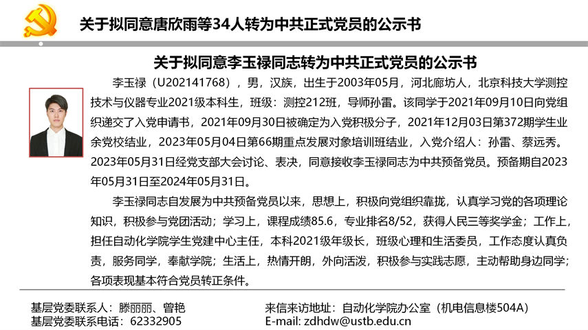 - 关于拟同意唐欣雨等34人转为中共05-20